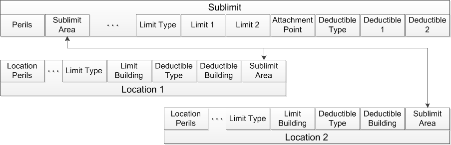 Contains information about limits and deductibles that apply across multiple, but not across all, locations. The Sublimit Area field in a sublimit entry within a contracts import file (Applies To Locations field in the Touchstone user interface) and the Sublimit Area field for an individual location entry within a locations import file link the location with the sublimit. You can apply a single sublimit area to a location. |