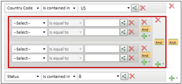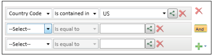 You now have two blank filter rows, which are slightly indented beneath the Country Code filter row.